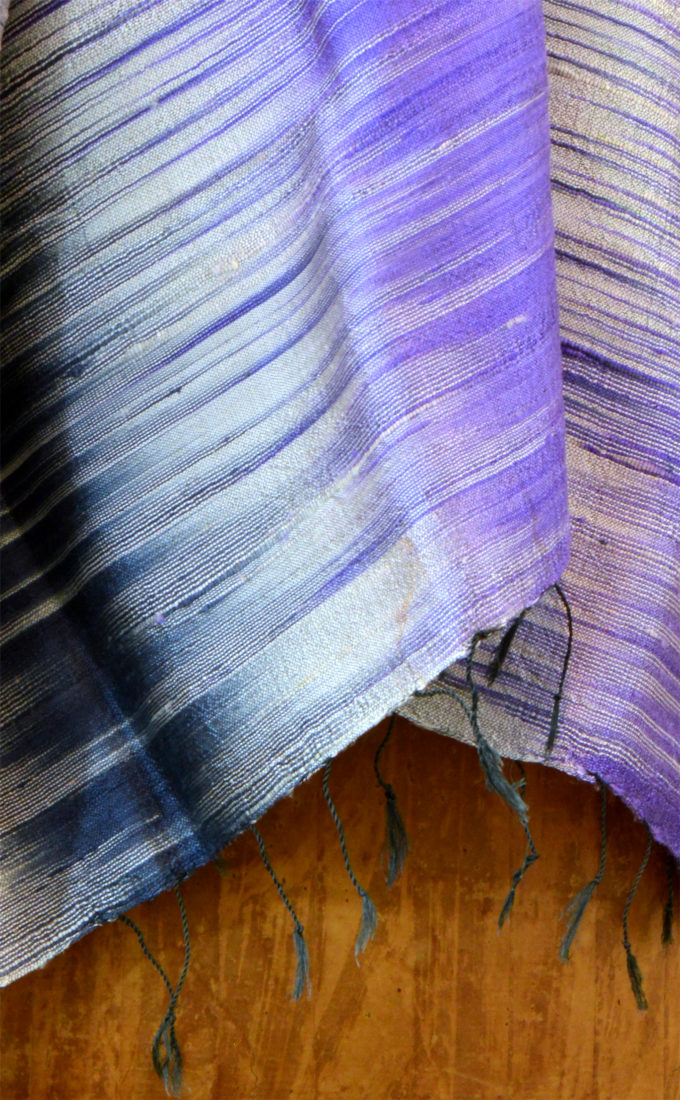 Schal Maulbeerseide geflammt in violett/beige/blau