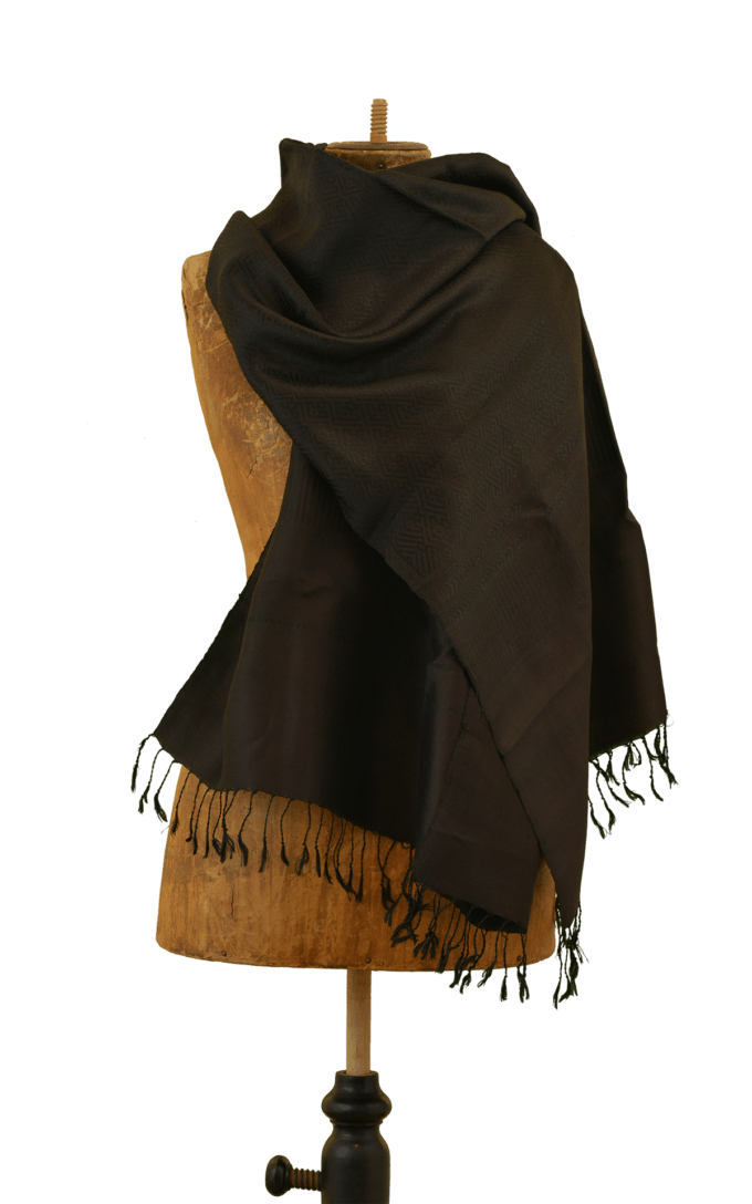 Stola Maulbeerseide traditionell gemustert in schwarz/dunkelbraun